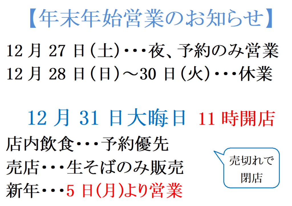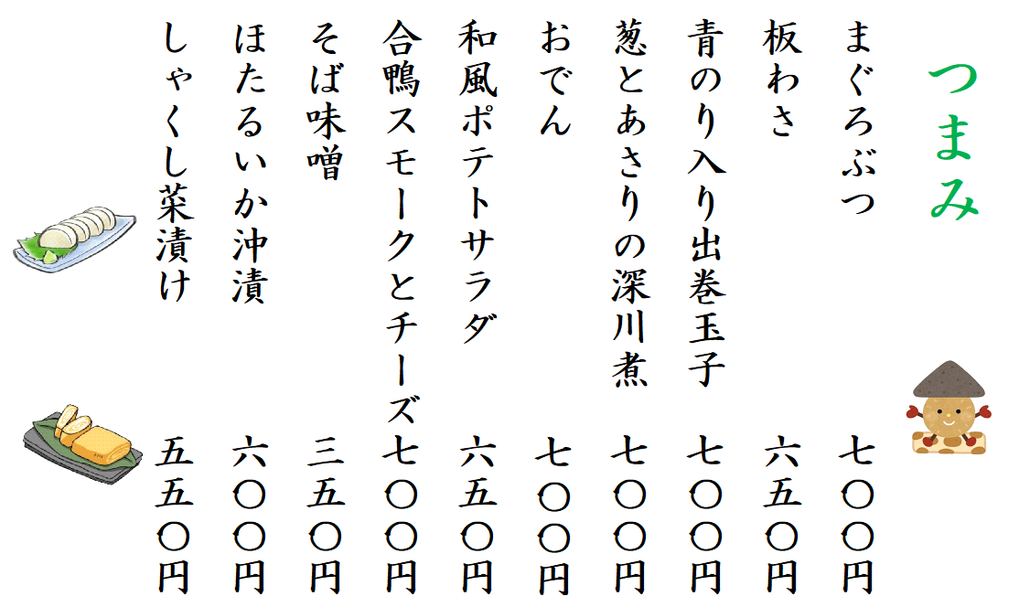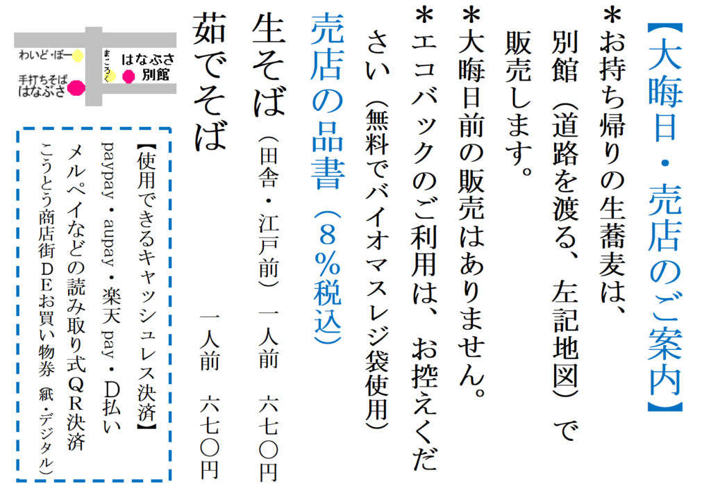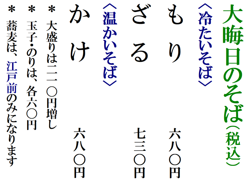 ↓蕎麦は田舎・江戸の2種類です。値上げはしていません