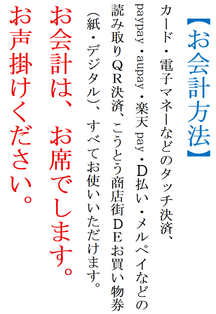 狭い店内ですので、立ち歩かないようにお願いします。
